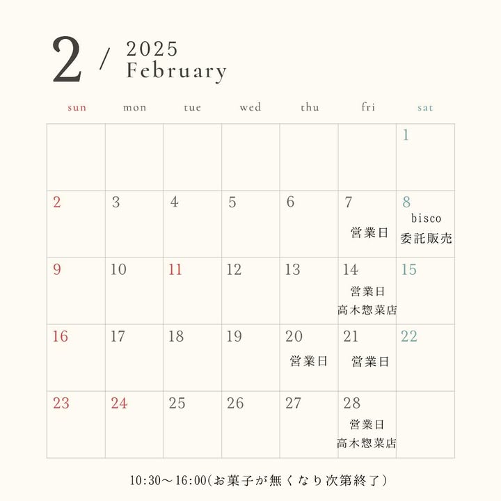 8日(土)雪予報のため→13日(木)にbisco委託販売 10:30-