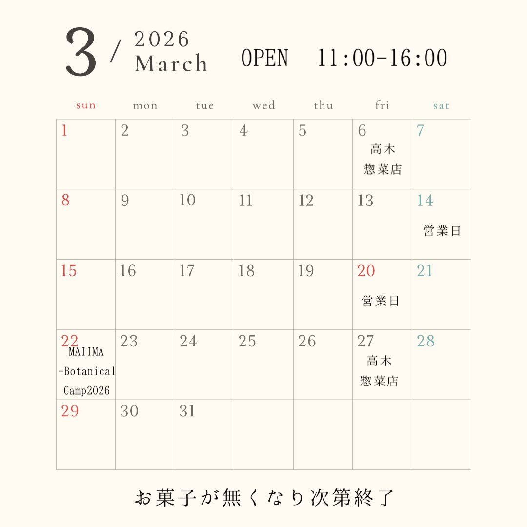 3月は土曜日や祝日、久しぶりに大きなイベントの出店もあります。